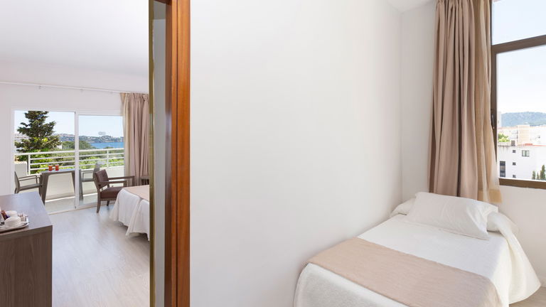 In den Mar Hotels Paguera & Spa bieten wir Ihnen 19 Dreibettzimmer von 27 m2 mit zwei Einzelbetten, einem zusätzlichen Einzelbett, Satellitenfernsehen, eigenem Bad mit Badewanne, Kleiderschrank, individueller Klimaanlage, Sesseln und Couchtisch, Safe, Vergrößerungsspiegel, Haartrockner, kostenlosem WLAN, Minikühlschrank und einer 6 m2 großen Terrasse - ideal für Paare mit einem Kind!