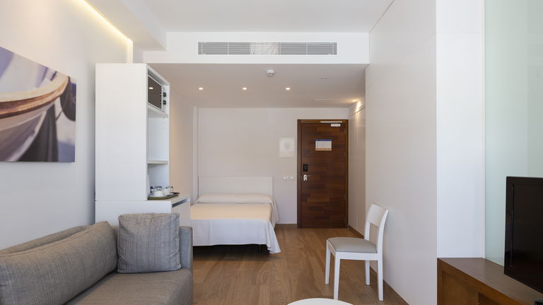 Con 32 m2, las suites disponen de dormitorio independiente, salón con cama supletoria y sofá, baño completo, dos televisores y balcón equipado.